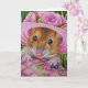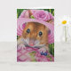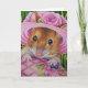 Carte Souris dans le bonnet trouvant un œuf rose aquarel