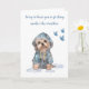 Carte Sous la pluie avec un adorable Yorkie bleu aquarel