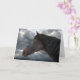 Design d'art photo équin. La carte de sympathie occidentale présente le beau visage d'un cheval Thoroughbred avec des cieux orageux, des rayons du soleil se brisant à travers les nuages. Texte réconfortant : LES MOTS SONT PEU. PENSÉES ET PRIÈRES SONT NOMBREUSES. AVEC SYMPATHIE. Personnalisez ou customisez quelqu'un qui a subi la perte d'un ami humain ou animal. Extrait de la "Horse Friends Series" de She Wolf Medicine.