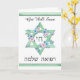 Cette carte est entièrement personnalisable et une belle expression de voeux pour quelqu'un qui a besoin de guérison. Le texte hébreu dit "r'fuah sh'leimah". La pierre verte pastel texturée Star of David est ornée de fleurs rose, lavande et bleu poudreux, et les lettres hébraïques, chai, pour la vie sont centrées dans l'étoile. Vous serez impressionné par l'impression couleur de haute qualité de cette carte de voeux fleurie joyeuse.