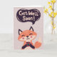 Carte Soyez bien Bientôt mignon Fox avec salutation café
