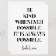 Carte Soyez gentil chaque fois que possible. C'est toujo