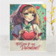 Carte de Saint-Valentin colorée de style manga avec une fille charmante tenant un cœur rouge et encadrée de détails doux. Le devant montre un « Veux-tu être ma Saint-Valentin ? » enchanteur en lettres ludiques. Un geste sincère plein d'amour et de charme.
