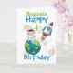 Une carte de design Space amusante pour un 4ème anniversaire avec un astronaute assis sur le monde avec une fusée spatiale à proximité et un arrière - plan de planètes et d'étoiles filantes. Un design amusant pour ces petits garçons qui auront quatre ans. Peut être personnalisé en modifiant le nom et l'âge puis ajouter votre propre message à l'intérieur. Une belle carte d'anniversaire pour un petit-fils ou neveu.