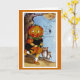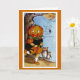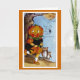Carte de voeux Halloween vintage illustration d'une fille Citrouille effrayée par les fantômes et une araignée.