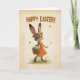 This adorable Easter card features a cheerful baby bunny in an orange dress, wearing a floral crown and carrying a basket of colorful eggs. Surrounded by butterflies and soft meadow textures, the illustration blends warm vintage tones with whimsical charm. Perfect for kids, families, and anyone who loves sweet, uplifting Easter art. Printed on premium cardstock for a beautiful seasonal keepsake.