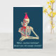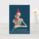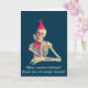Squelette souriant avec sa main osseuse reposant sur son menton, réalisé dans des couleurs rétro. Carte d'anniversaire avec un message à l'intérieur.