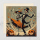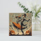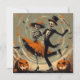 Cette charmante carte de vœux carrée et inquiétante présente une illustration de Halloween d'inspiration vintage qui capture la saison effrayante dans toute sa gloire fantaisiste et terrifiante. Au centre de la scène, un couple de squelettes se lance sur la piste de danse - bras dessus, bras dessous, les os claquant à l'unisson - savourant clairement la magie macabre d'une nuit d'octobre au clair de lune. Le squelette féminin porte une jupe à volants et un chapeau élégant perché de manière désinvolte sur son crâne, tandis que le squelette masculin est vêtu d'un smoking classique, donnant à l'ensemble de la scène une touche de salle de bal à l'ancienne avec une touche fantomatique. Ces deux amoureux squelettiques semblent tourbillonner dans l'au-delà en parfaite harmonie, faisant de cette carte autant une carte romantique qu'effray