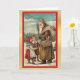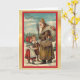 Sur la façade de cette carte de voeux de vacances, on peut voir une image vintage de St Nicolas portant son panier de bonbons et visitant avec des enfants paysans français. Derrière eux se trouve un paysage hivernal enneigé.L'image est placée sur un arrière - plan léger infusé de dégradé d'or, et est bordée de rouge avec une fine ligne d'or. L'intérieur de la carte a l'arrière - plan or à gauche et l'autre côté est blanc, et partiellement vide pour votre propre message, avec des champs de texte personnalisés pour votre signature en bas. Célébrez Noël à l'ancienne avec cette belle carte qui présente une image d'autrefois.