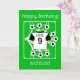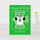Envoyez vos vœux d'anniversaire à votre star de football ! Une carte d'anniversaire entièrement personnalisable sur le thème du football, représentant un maillot de football blanc avec des manches noires, aux couleurs du Fulham de Londres, sur un terrain avec des ballons de football ayant été bottés dans toutes les directions, avec des étoiles dorées. Personnalisez le message d'anniversaire ; le numéro écrit qui pourrait être remplacé par un surnom ; le numéro qui représente ici un âge, ainsi que le nom qui pourrait être adapté au nom d'un club de football préféré ! Un plaisir footballistique lumineux, joyeux et positif pour le fan de football / sport !