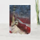 Une carte patriotique merveilleuse avec la bannière étoilée peinte et Madame Liberty, souhaitant à l'Amérique par joyeux anniversaire