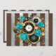 Carte Steampunk Clock and Turquoise Roses on Striped