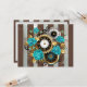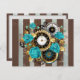 Carte Steampunk Clock and Turquoise Roses on Striped