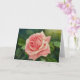 Mon oeuvre originale est présentée sur cette carte à notes florales, consistant en ma photographie originale d'un rose rose pêche fleuri dans un jardin, stylisé avec une technique de peinture à l'aquarelle vintage pour un aspect artistique. La carte est vide à l'intérieur, vous pouvez écrire vos lettres et notes personnelles.