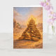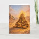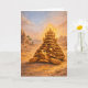 Watercolor surreal drawing of a Sulcata Tortoise with a luxurious pyramid birthday cake with Egyptian landscape. Perfect birthday card for surreal art and turtle lovers. Model: Trinity.