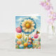 Cette carte exquise présente l'illustration fantaisiste d'une jeune fille qui interagit avec la nature dans un jardin animé. Un tournesol imposant prend le devant de la scène, entouré de tulipes et de flore capricieuse, avec un papillon convivial qui ajoute du charme. La scène est dressée contre un ciel bleu clair, créant une atmosphère lumineuse et joyeuse. Parfait pour les salutations printanières, cette carte postale saisit l'essence de la curiosité ludique et la joie de l'exploration printanière.