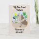 Walter, le chat de dessin animé, est déguisé en momie pour illustrer le concept de vieux comme la terre. La carte dit ma chère amie (nom personnalisé). Tu n'es pas aussi vieux que la terre, mais tu vas dans cette direction. Joyeux Anniversaire, vieux coquin. de la part de (nom personnalisé). Le texte peut être modifié si vous ne connaissez pas bien le destinataire.