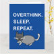 Overthink Sleep Repeat Sleeping Cat Greeting Card conçu par Nisha Prabhu. Envoyez un message de contemplation et de confort avec cette carte de voeux "Overthink Sleep Repeat" avec un design adorable de chat endormi ! Parfait pour les amoureux de les chats et ceux qui apprécient un moment de détente, cette carte est un moyen charmant de se connecter avec quelqu'un de spécial. Que vous réfléchissiez aux mystères de la vie ou que vous fassiez simplement une sieste de chat paisible, ce design fantaisiste apportera un sourire au visage du destinataire. Découvrez l'art de la pensée excessive et de la tranquillité avec cette carte de voeux unique qui saisit l'essence de la sérénité féline. Partagez un peu de purr-fection avec cette carte délicieuse inspirée par le chat et faites éclater la journée de quelqu'un !