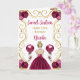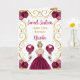 Cette invitation de carte d'anniversaire sweet sixteen présente un cadre doré élégant, une belle princesse aux cheveux blonds et une robe rouge bordeaux, des fleurs et un ballon.