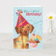 Bonne fête d'anniversaire avec ce design mignon avec un Vizsla mignonette, portant un casquette de fête avec un soleil de crème glacée. Le texte peut être facilement changé; il suffit de cliquer sur le bouton personnaliser.