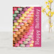Une tour de macarons colorés exposés astucieusement dans une vitrine de boulangerie. Le devant dit Joyeux anniversaire contre un arrière - plan rose. Le texte intérieur dit "Espoir que ton anniversaire soit si doux qu'il te donne le vertige". Vous pouvez le personnaliser avec vos propres mots si vous le souhaitez. Il s'agit d'une carte amusante à donner à quelqu'un qui a un amour de cette confection meringue.