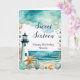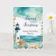 Belle carte d'anniversaire sweet sixteen avec un phare noir et blanc nautique, étoiles de mer et coquillages. Parfait pour une fête d'anniversaire en sweet sixteen. Les mots peuvent être changés en fonction de vos propres détails ou exigences
