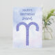 Cette jolie carte d'anniversaire personnalisée, mauve et lavande Aries, présente votre signe astrologique du Zodiac dans une belle étincelle comme les constellations. Customisez cette jolie conception astrologique avec votre nom en écriture cursive pour quelqu'un qui a un anniversaire fin mars ou début avril.