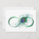 Le symbole de l'infinity with a bright, green, artistic peacock feather on a white background. Tattoo style.