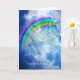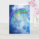 Cette carte de condoléances comprend des champs de texte modifiables à l'intérieur et à l'extérieur pour exprimer votre sympathie à une maman ou un papa chat pour la perte de leur chat adoré. L'image représente le visage d'un chat derrière des nuages célestes et un arc-en-ciel.