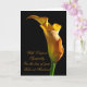 A stately golden arum lily stands lit from the side. A parfait flower to convey words of sympathy.