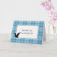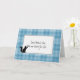 Silhouette d'un chat sur un motif à carreaux bleus pour la sympathie en cas de perte d'un animal de compagnie. Tout le texte peut être modifié.