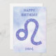 Cette jolie carte d'anniversaire personnalisée en violet et lavande Leo heureux vous présente votre signe astrologique du Zodiac dans une belle étincelle comme les constellations. Customisez cette jolie conception astrologique avec votre nom en écriture cursive pour quelqu'un qui a un anniversaire fin juillet ou début août.