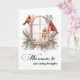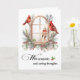 Ce design soigné montre des cardinaux rouges à une fenêtre d'hiver entourée de verdure. Il offre un moyen paisible d'express une sympathie sincère, avec un design qui reflète à la fois confort et souvenir.