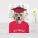 Chien d'or récupérateur en t-shirt rouge, lunettes de soleil aviateur et casquette de graduation rouge pour les félicitations diplômés.