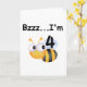 Un beau bourdon et un texte qui dit "Bzzz...I'm 4" sur les T-shirts Buzz Bumblebee 4th Birthday, costumes, cartes, autocollants, tasses, magnets, sacs fourre-tout, et autres vêtements et cadeaux de 4ème anniversaire.