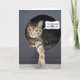 Chatte de tabby gris dans une boîte à cubicle avec bulle vocale pour 45ème anniversaire. L'âge peut être modifié.