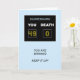 Carte d'anniversaire 49e Une drôle de carte d'anniversaire à donner pour un anniversaire. Un tableau de bord montre l'âge comme le score gagnant contre la mort. Les mots "Vous gagnez, continuez !" complètent la scène.
