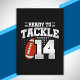 Ce design d'anniversaire de football amusant est parfait pour une fête d'anniversaire sur le thème de football pour célébrer le 14e anniversaire ! Il est également idéal pour une fête d'anniversaire de mariage de 14 ans pour les couples qui célèbrent leur 14e anniversaire ensemble. Caractéristiques "Prêt à s'attaquer à 14" citation avec graphique de football. Parfait pour quiconque aime le football !