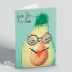 Carte de Saint-Valentin mignonne représentant un avocat tenant un cœur rouge.