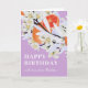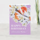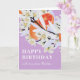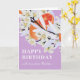 Elégante et chic Bonne carte d'anniversaire avec de belles branches tangerines florissantes. Carte botanique florale aux fleurs et agrumes délicats au printemps. Orange, pastel et lilas. Ajoutez votre texte.