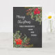 Joyeux Noël pour la tante et la carte oncle en aquarelle rustique poinsettias et feuillage et arrière - plan de tableau noir.