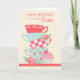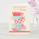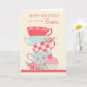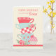 Célébrez l'anniversaire spécial d'une soeur avec cette jolie carte avec un ensemble de tasses à thé en fleur, pois de polka et en vichy motifs, roses roses et un cupcake avec garniture de coeur pois rose. Arrière - plan est crème avec une bordure graphique en dentelle de corail. Carte graphique©MyClipartStore
