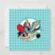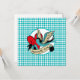 L'illustration de style tatouage dessinée à la main célèbre votre maman préférée avec des oiseaux bleus aqua, un cœur rouge et une bannière "maman géniale" sur fond de harlequin aqua. Parfait pour la fête des mères ou d'autres jours spéciaux pour l'honorer avec un texte personnalisable au dos