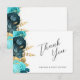 Carte Teal Aqua Gold Floral Wedding Flat Thank You