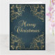 Carte Teal Blue Faux Gold Ornate Border Merry Christmas
