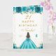 Carte Teal Floral Brunette Hair Girl Birthday