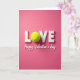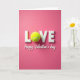 This Valentine's Day card features the word “LOVE” centered on a deep rose‑pink background that feels warm and flirty 🥰. The letters are chunky, three‑dimensional, and white, with gentle shadows that make them look raised off the page. Instead of a regular “O,” there’s a bright chartreuse tennis ball, its fuzzy texture adding a sporty twist that reads like an inside joke between sweethearts or close friends ❤️. The contrast between the neon‑green ball and the pink field draws your eyes straight to the middle, like a wink in the design. Beneath the large word, the smaller line “Happy Valentine’s day” appears in white, set in a flowing cursive style and centered under the main text. Soft, even lighting highlights the matte pink surface, the smooth white letter faces, and the felted seams of the tennis ball. The tennis ball “O” sits snugly between the “L” and “V,” with its curved seam lines clearly visible against the white letters.
