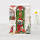 Térrier Cairn assis à l'extérieur de la maison décorée avec une couronne de Noël, l'arbre de Noël est une idée de cadeau de Noël parfait pour les amateurs de chiens.