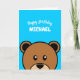 Carte Tête d'ours mignonne | Caricature simple sur bleu