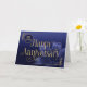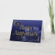 Il s'agit d'une carte Employé 35ème Anniversaire avec le texte 'Joyeux Anniversaire' écrit dans une police élégante avec des swashes fluides. Le texte et les détails de la conception ont un effet de feuille d'or attrayant superposé. L'arrière - plan se compose d'un dégradé bleu moyen à bleu foncé, avec une fleur de lys accrocheuse, dans les tons bleu assortis, dans le coin inférieur droit. Le nombre d'années est en haut à gauche. REMARQUE : L'effet de feuille d'or est numériquement simulé dans l'illustration, aucune feuille d'or réelle ne sera utilisée dans la fabrication de ce produit. Conception par NATALIE KINNEAR